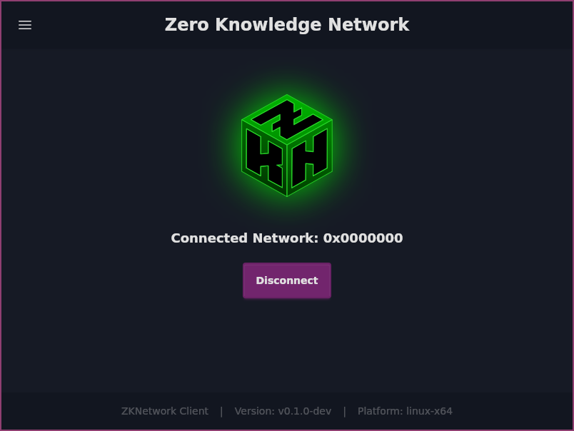 The ZKNetwork Client is a secure, cross-platform desktop application that provides users with intuitive access to the Zero Knowledge Network. Designed as a GUI companion to a terminal client, it simplifies interaction with ZKNâs privacy infrastructure, making secure network access accessible and user-friendly.